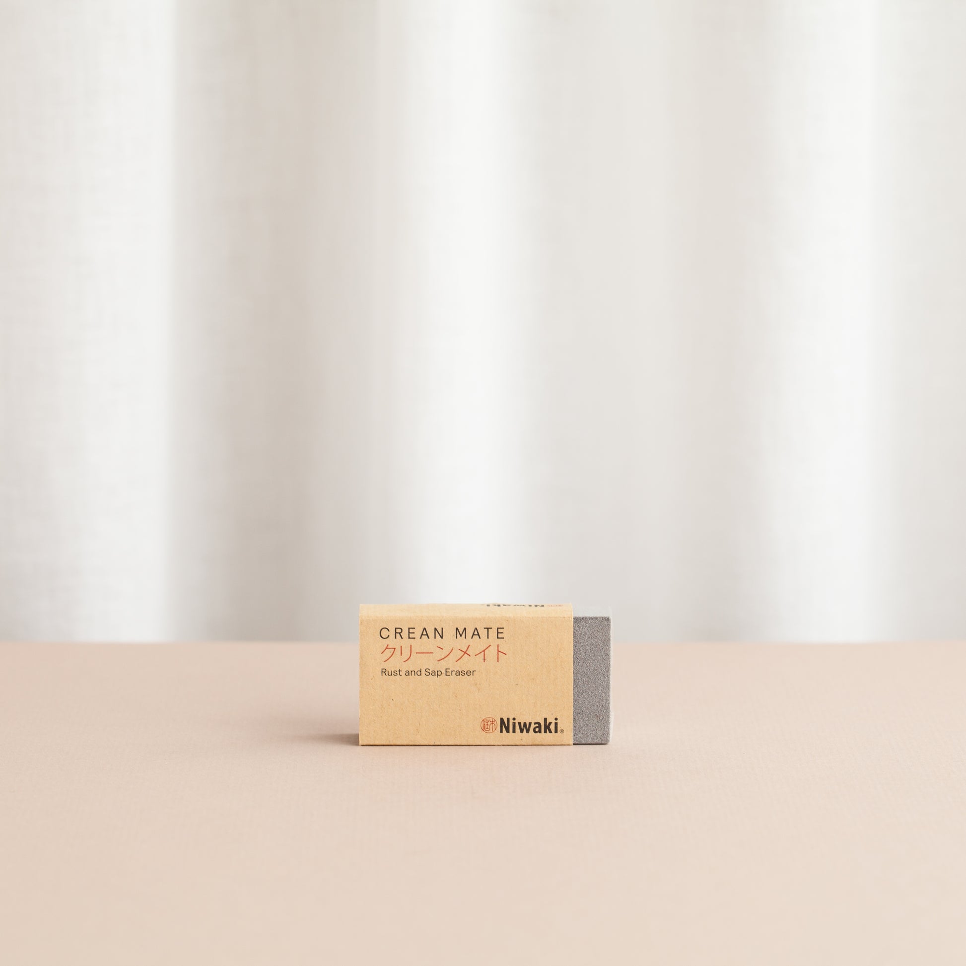 This brilliant little scouring block is for cleaning resin, rust and other gunks from blades. Add a few drops of Camellia Oil to the blade (or water works fine, but its is best to oil later anyway) then just use the Crean Mate as you would a rubber, its makes satisfyingly easy work of stubbon rust and sap!